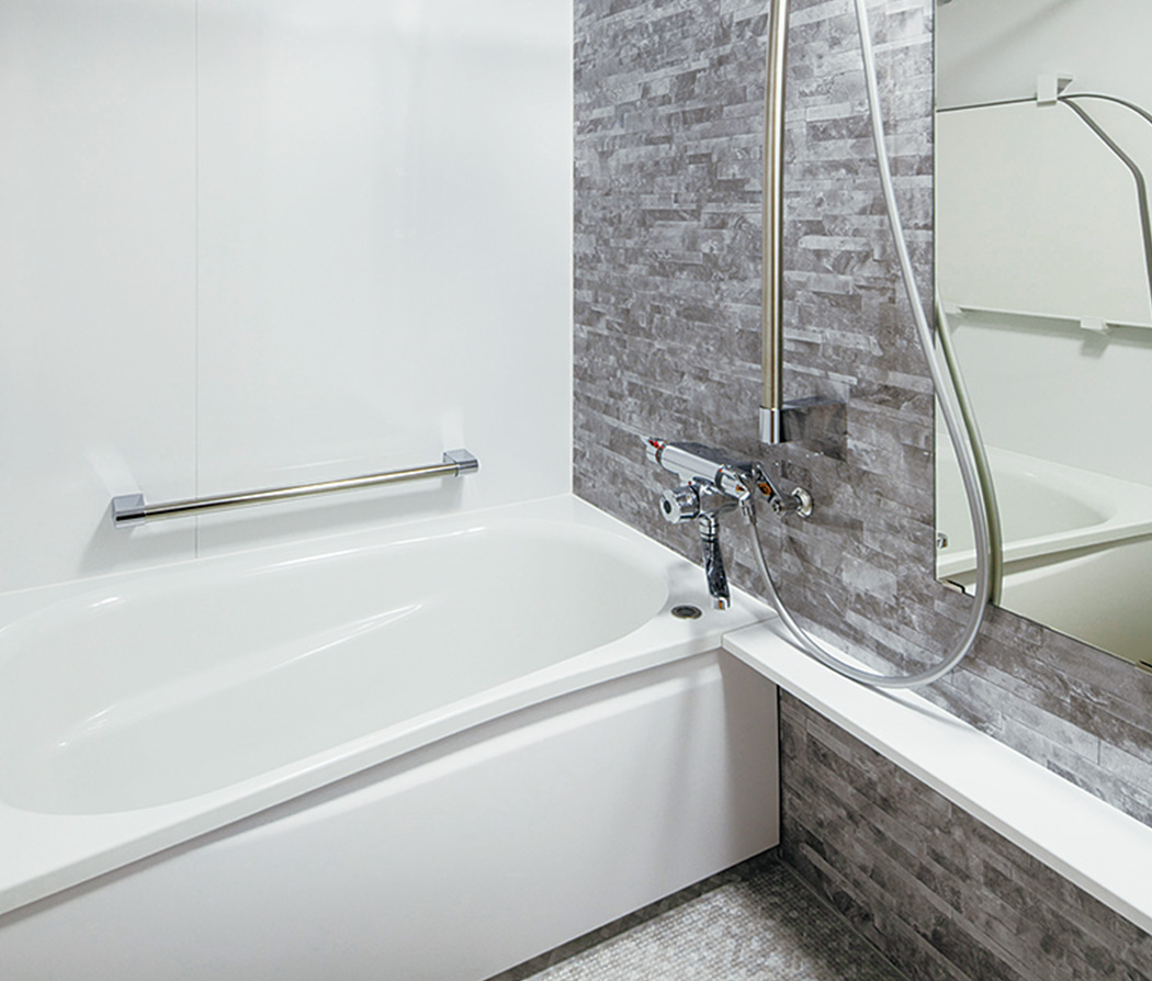 浴室はTOTOのマンションリモデルバスルームを採用。サイズは以前と変わらないが、ドアは折れ戸タイプでなく東広島店のショールームにあったスライドドアを選んだ。