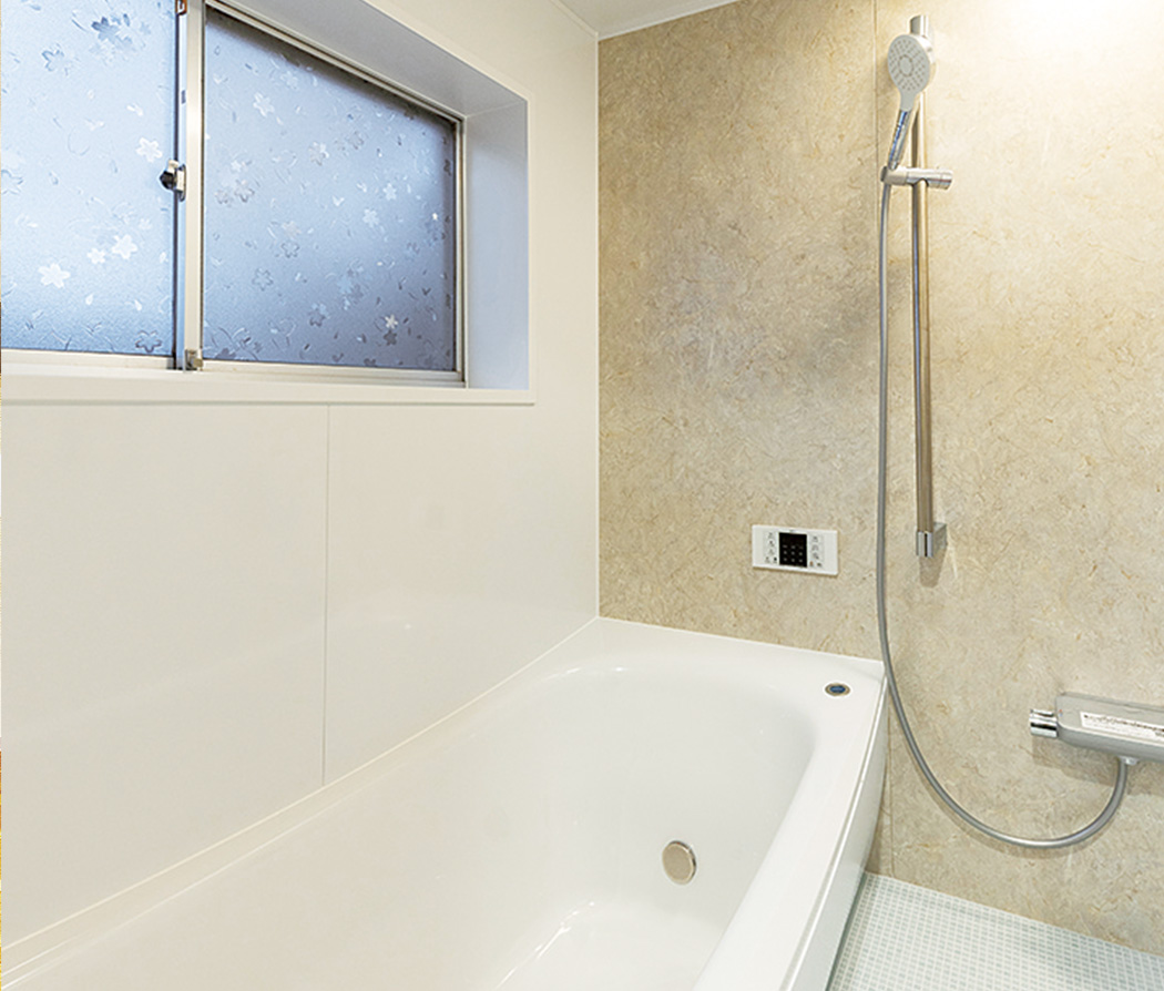 浴室は既存の窓を生かしてTOTOのユニットバスに変更。水回りを一新することで古民家を機能的で住みやすい、現代のライフスタイルに合った住まいに。