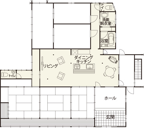 - LDK、トイレ2カ所、洗面脱衣室、浴室、廊下