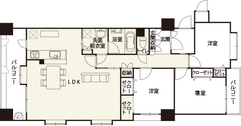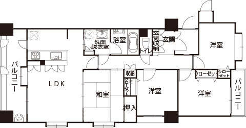 LDK、洗面脱衣室、浴室、廊下、トイレ、洋室のクローゼット