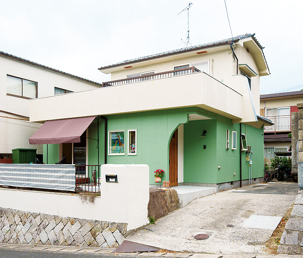 外壁は1階の色を奥様の好きなグリーンで塗装
